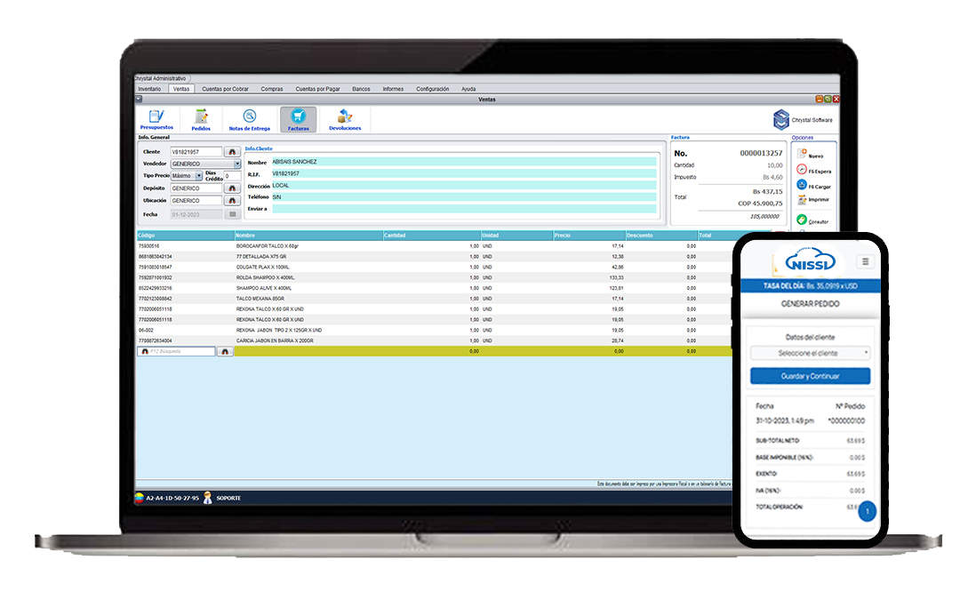 NISSI Cloud, es una aplicacion web B2B / B2C sincronizada con el Sistema Chrystal Administrativo de forma activa, que te permitirá gestionar Catálogos en Línea, Pedidos de Clientes, Estados de Cuenta, Registros de Pago y más... Ideal para Empresa de Distribución con Fuerza de Ventas, Gran Mayor, Droguerías, Laboratorios y Casas de Representación.
